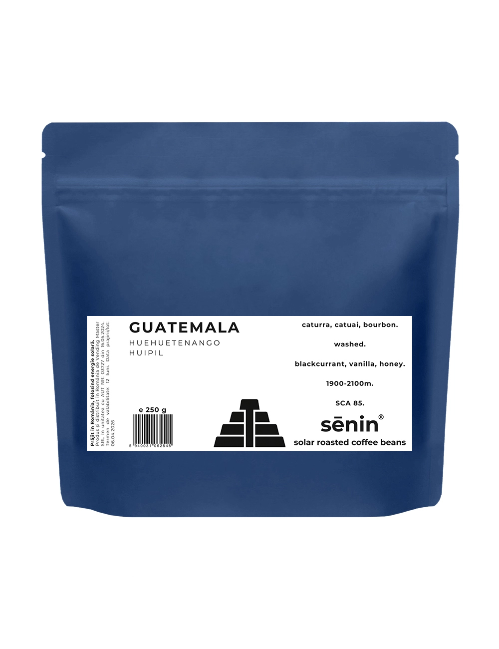 Cafea de specialitate din regiunea Huehuetenango, Guatemala, cu profil aromatic complex și corp rotund. În prima impresie se simt accente de coajă de portocală și fructe uscate, urmate de note florale delicate și alune, cu un post-gust de grapefruit și mandarină.